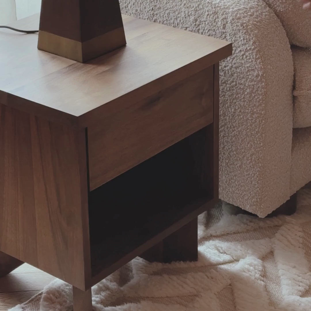 V Bedside Table Walnut is a multi-purpose table made of solid walnut. With a lot of storage, this table is just as functional in your bedroom next to a bed, as in the living room next to an armchair or sofa. The bedside table in walnut has been oiled to receive a matte finish. In addition to this walnut version, the table is also available in beech.