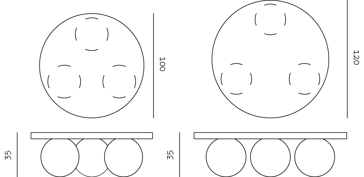Sphere Round Sofa Table is a coffee table with a design both simple and complex. The over sized spheres of dark stained beech support a massive, travertine marble table top. The top is 5 cm and has a white shade with and some lighter tones in marbling. Since marble is a natural material, each slate is unique and with differences in structure and color. The Sphere Round Sofa Table comes in two sizes, 100 and 120 cm in diameter. In the same series, a squared version is also presented.